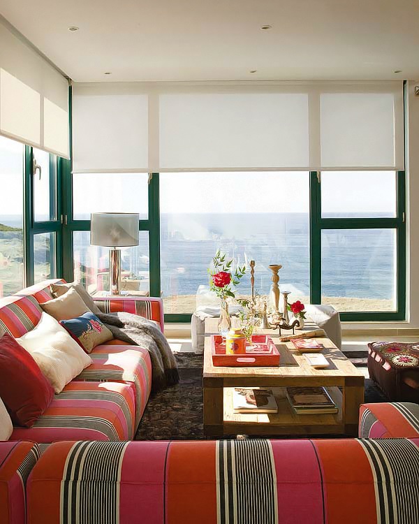 Con vistas al Cantábrico, acogedora y con estilo, lo tiene todo para enamorar. . Los grandes ventanales, que enmarcan el paisaje y gracias a los estores enrollables, encargados a medida, se matiza la entrada de luz en el interior y se permite ver las maravillosas vistas al mar.