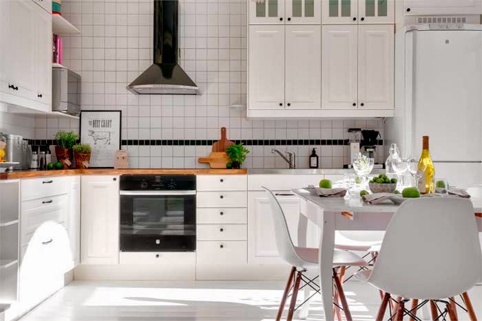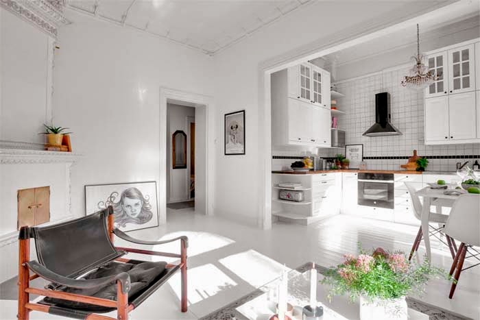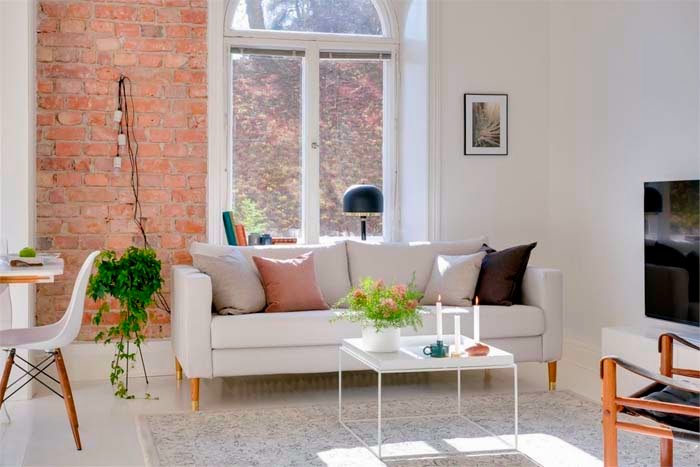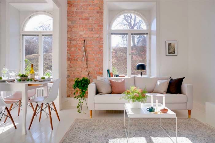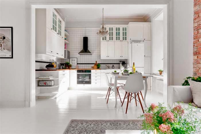 Y es que el color blanco, la cocina abierta al salón, los detalles de la pared de ladrillo y esos grandes ventanales, son detalles que no me canso de ver y que siempre consiguen robarme el corazón.