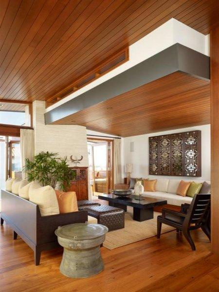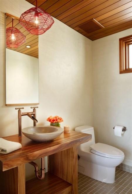La naturalidad está muy bien lograda a través de un muy buen manejo de la madera tanto para la construcción de techos, como paredes, suelos, estanterías y buena parte del mobiliario.