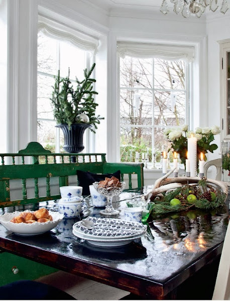 En esta gran casa blanca de Dinamarca, todo esta preparado para celebrar la Navidad y la llegada de Papa Noel.....no esperes más y ve haciendo acopio de los adornos y manos a la obra.