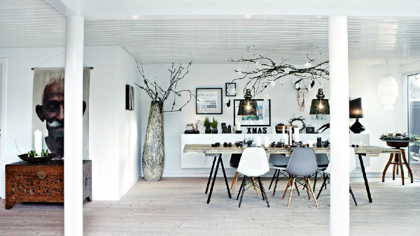 Aquí estoy un día más mostrando una casa decorada para la Navidad, pero en esta ocasión con un estilo típicamente nórdico en blanco y negro, creando una atmósfera elegante, luminosa y moderna. Una casa danesa que además de usar el binomio de color blanco y negro introduce escasos detalles en brillos dorados, plateados o de cristal, para decorar la mesa de comedor. Unos mínimos guiños que rompen ti ...
