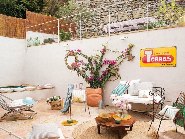 Y para finalizar el recorrido por esta preciosa casa salimos al exterior donde seguimos con las piezas vintage ¿Te acuerdas de los chocolates Torras?.Un espacio a dos alturas donde disfrutar de un rincón para comidas y reuniones interminables con famila y amigos. ¿Qué mejor plan para losmomentos de ocio?.