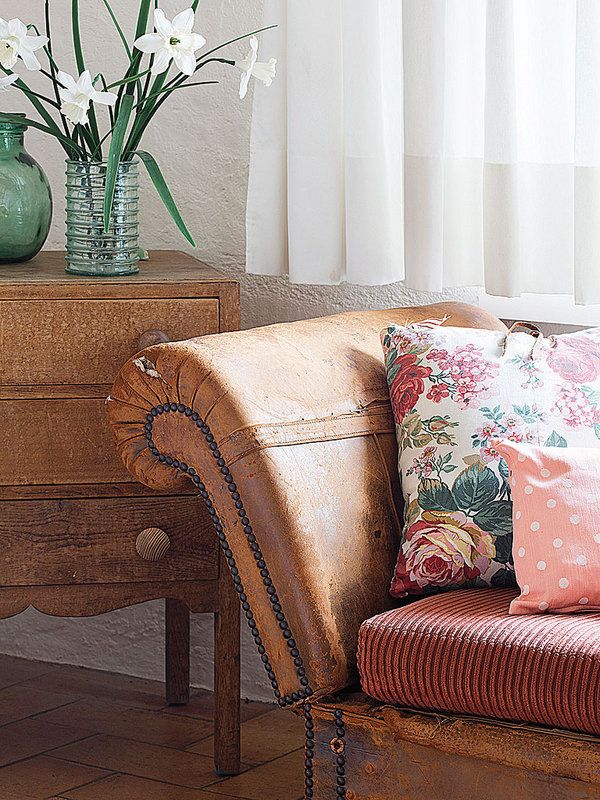 Detalles sin grandes pretensiones pero con mucha personalidad como las maletas vintage a modo de mesita Un recurso superdecorativo y muy en boga.Menudas vistas tienes desde la cheise longe de cuero desgastado .Ahora mismo me tumbaba yo ahí a echarme una siestecita!!!. ¿Tú pondrías una chaise longe en tu casa?. Yo muero por una jeje