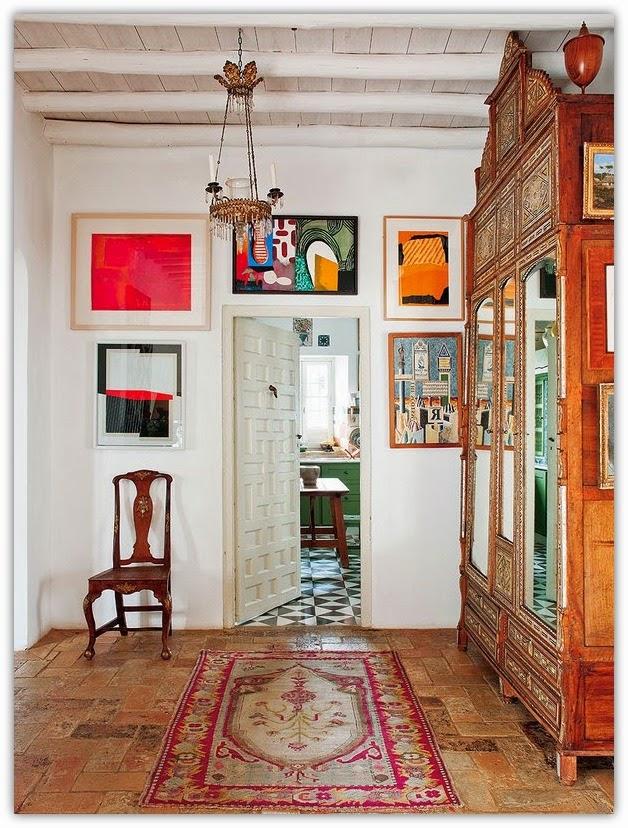 La guinda del pastel la pone un exquisito interiorismo plagado de piezas de anticuario.Una mezcolanza de países( Francia,España, Turquía, Marruecos, India , Japón o Inglaterra) se dan cita en las piezas de mobiliario y en la decoración con obras de arte de cubren sus blancas paredes que hace que parezcan elementos que siempre pertenecieron a la casa.