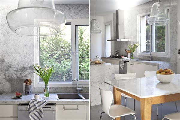 La casa que os mostramos hoy es un buen ejemplo de ello. En ella se usarón muebles de corte clásico combinados con colores claros en los tejidos de las tapicerias y cortinas.