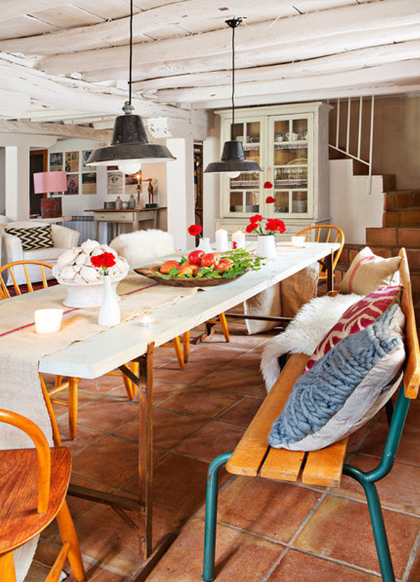 Se mezcla materiales étnicos con otros más campestres, una decoración ecléctica que funciona al 100%