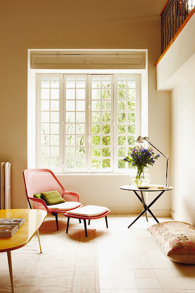 Lámpara de corcho de gran formato , que imprime mucha personalidad a la estancia , junto con las sillas butterfly y esa mesa de centro tan "diferente"....... hacen de esta casa en Californi ...
