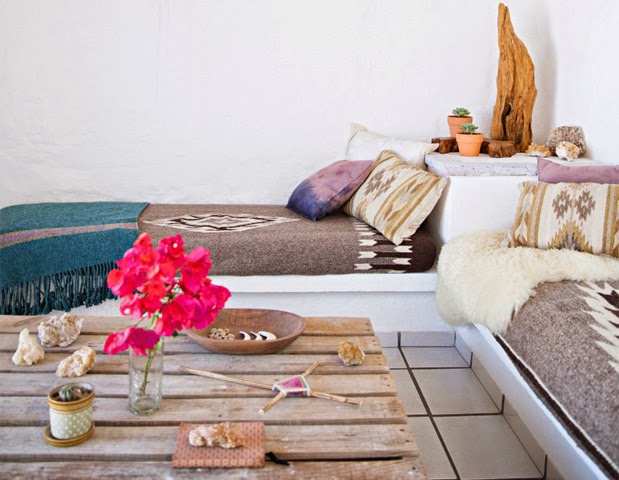 Al igual que en los últimos dos meses hacemos un nuevo tour dominical por casas y cabañas repletas de encanto cerca del mar. En esta ocasión nos trasladamos a una casita situada en una colina de Sayulita México, desde donde se puede ver el océano desde cualquiera de sus habitaciones. Una casa tranquila y serena en color blanco, cuya decoración esta inspirada en el paisaje y la cultura de esta ciudad. Mobiliario en caña, mimbre y madera junto con textiles en fresco lino, se entremezclan con elementos decorativos realizados por la tribu indígena Huichol, creando una atmósfera llena de magia y espiritualidad.