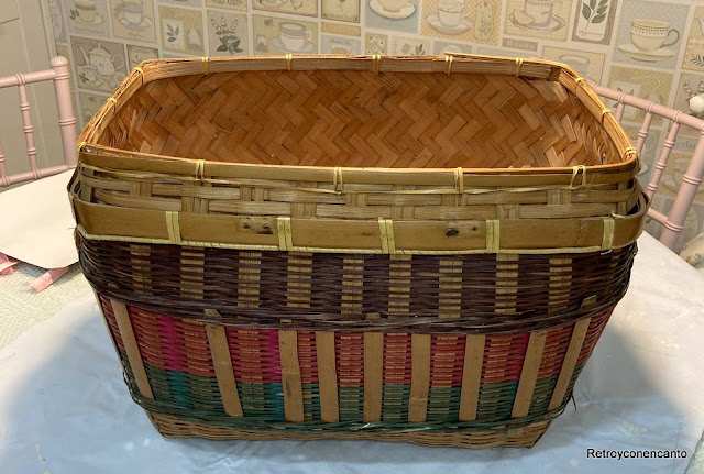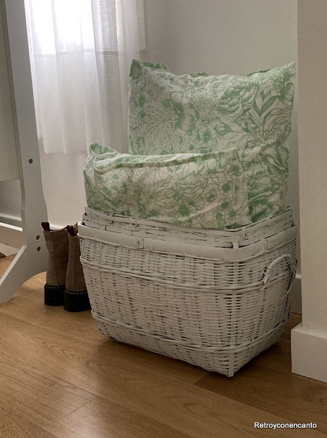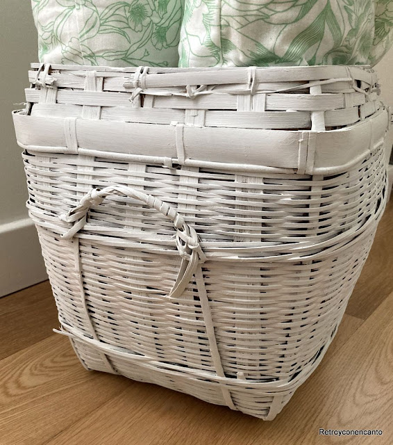 Solo teníamos que encontrar el momento de darle una manita de pintura, y éste llegó el último fin de semana que, por ser más largo, nos permitió llevar a cabo el proyecto con mucha tranquilidad. Lo cierto es que pintar el mimbre no tiene ninguna complicación pero, ir rellenando todos los huequitos sí resulta entretenido.