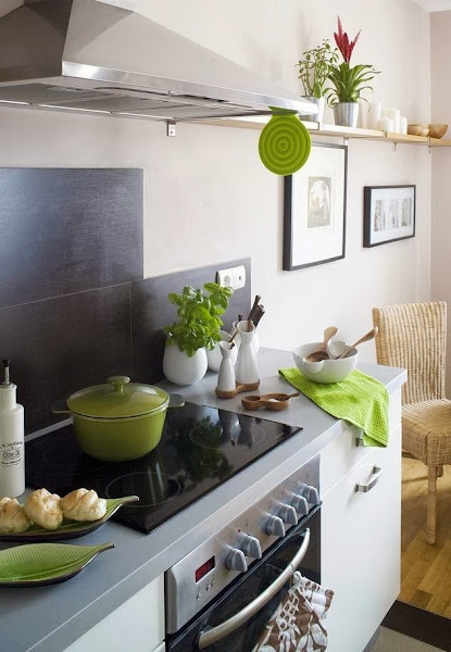 Qué os parece darle un toque de color a vuestras cocinas?? Con este ejemplo podéis ver que simplemente introduciendo colorido en algún que otro detalle como textiles, utensilios de cocina, etc.. consigue darle un cambio de look!!