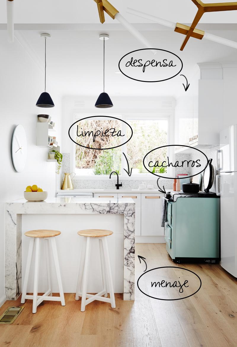 Por eso hoy os traigo esta cocina que me ha parecido un ejemplo ideal de una planificación y organización geniales. Es más, al verla, estuve divagando un rato para ver cómo podría organizarme yo con esta cocina, y es que cada cosa que tengo en mi cocina cabría perfectamente en esta.