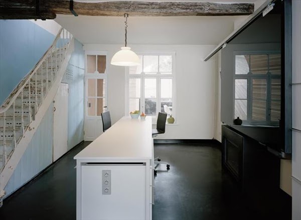 Lo vemos en esta casa, con una interesante cocina que dispone doble espacio de trabajo, funcionando como área de oficina y de cocina a la vez, con las funciones propias de cada una.