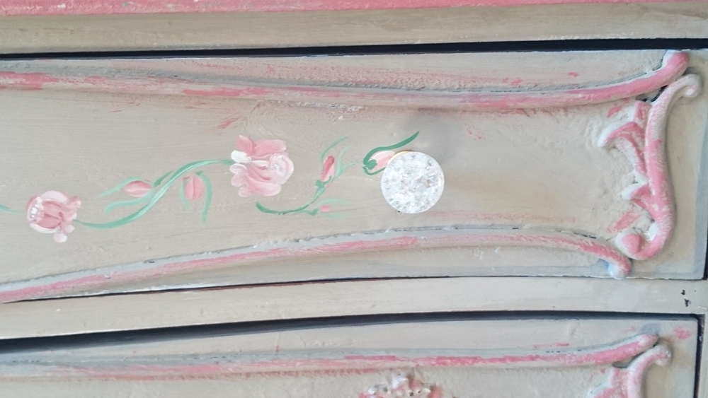 Y tal como me pidió la nueva dueña de la cómoda,decoré los cajones con una guirnalda de rosas.Las he realizado a mano alzada.