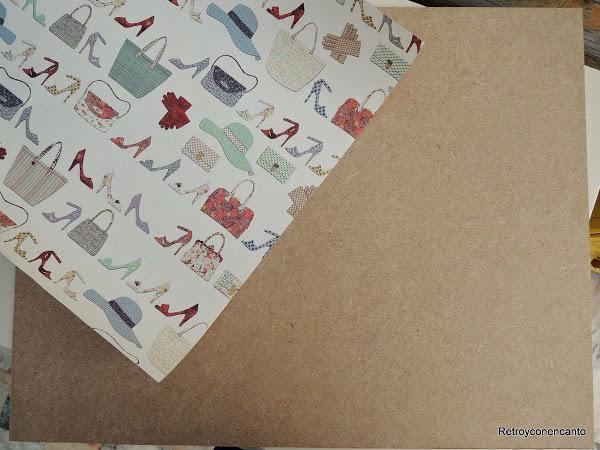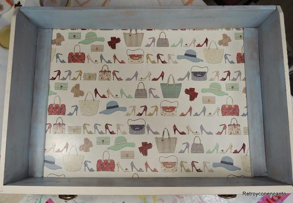 ... con la idea de forrarlos, con la técnica del decoupage, con este coqueto papel del que nos encaprichamos las dos y que encantó a su próxima dueña.