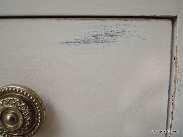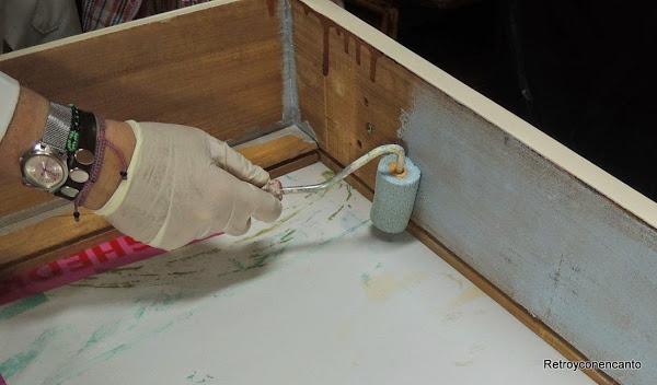 No hemos dicho que Mª José es hermana de una de nosotras. Escogió la pintura acrílica de Valentine VD138, una de nuestras favoritas, por cierto. Antes de barnizarla, le enviamos fotos y nos comentó que le apetecía con un ligero decapado.
