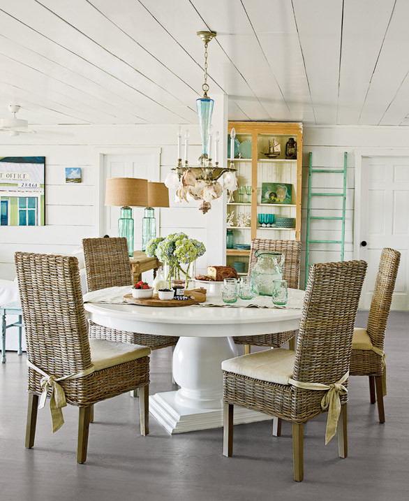 Una confortable casa en la playa, decorada con paredes y mobiliario en blanco para crear un ambiente tranquilo con acentos en colores azules y verdes que evocan al mar. Sus suelos en roble gris degradado similar a la madera en la deriva de los barcos y sus reminiscencias de muebles coloniales nos transportan a los lejanos mares del sur, en definitiva toda una delicia para el relax.
