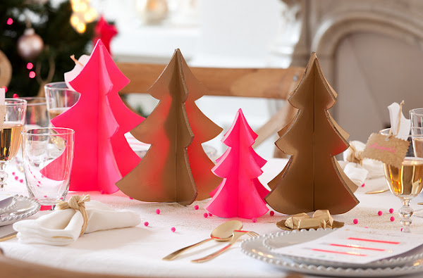 Los arbolitos en 3D, me encantan! Podéis hacerlos con cartón reciclado y pintarlos con chalk paint en spray. No se tarda nada de nada y el resultado es muy bueno.