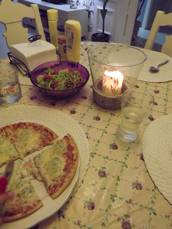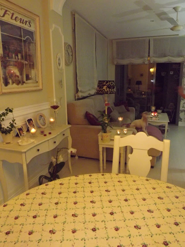 No hay nada mejor que una cena improvisada en el salón...pizzas,fajitas de pollo y verduras,un buen vino y por supuesto la compañía de los tuyos...Preparamos la mesa,es un detalle que nunca debe de faltar,un bonito mantel de flores,individuales de ratán blanco,una vela de lavanda y la compañía de los tuyos...La noche ya ha caído y disfrutamos de una agradable velada con una saborosa cena entre charlas, risas y el ir y venir de Yaiza que corretea por todo el salón.Despues Victor saldrá a la terracita a fumarse su puro y nosotras veremos una película de esas que tanto le gustan a Celia.Siempre es buena idea improvisar una cena,celebrando cualquier pequeño detalle ,nosotros con esta hemos inaugurado las vacaciones de verano que tanto esperábamos...Y vosotras...¿ tenéis algo que celebrar?...En un viernes a puertas de un nuevo fin de semana quedan inauguradas las vacaciones de agosto,nos espera un ajetreado fin de semana,sábado de playa y domingo de montaña, para celebrar un cariñoso cumpleaños, el del abuelo...Ya os contaré...¡Feliz viernes!