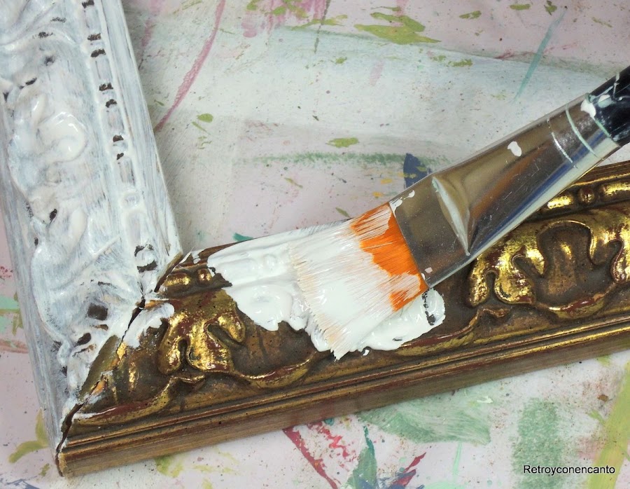 El pasado domingo, de nuevo y para no perder la costumbre, acudimos a nuestro mercadillo preferido, donde encontramos, entre otras muchas cosas (qué día tan provechoso), este marco que albergaba una labor que ya os mostraremos más adelante reciclada. Pero lo que nos interesa ahora es la moldura...