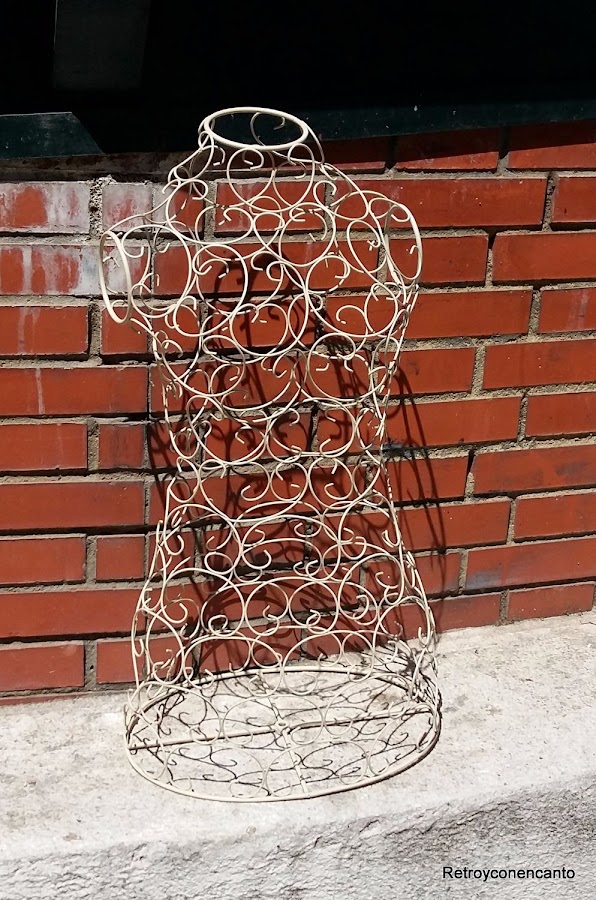 ¡Nuestro último hallazgo fue ayer mismo! Hay un contenedor en el que todos, pero todos los días, aparece algo que nos llama la atención. Y lo mejor es que está situado justo al lado del portal de una nosotras. Este maniquí de forja, que tiene a bien estar pintado ya de blanco, se viene también a nuestro evento.