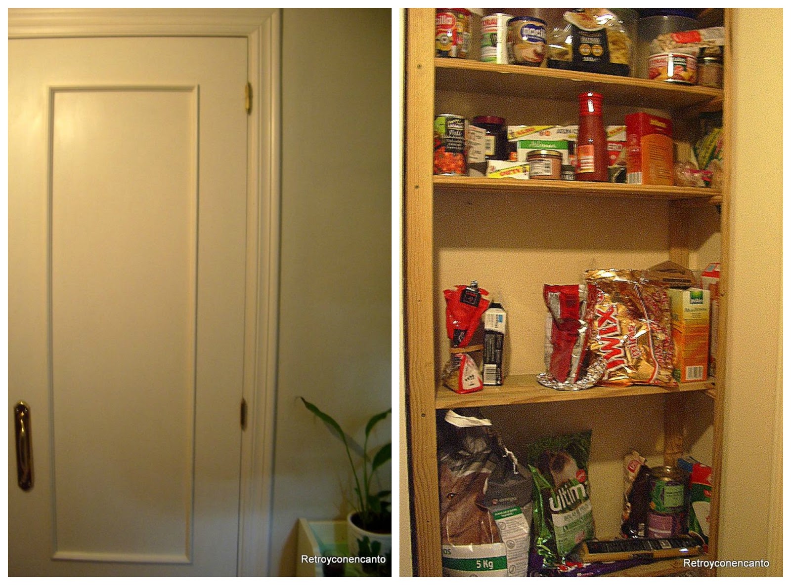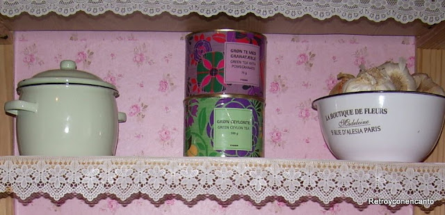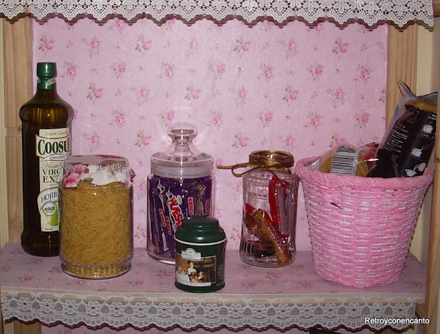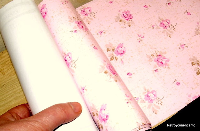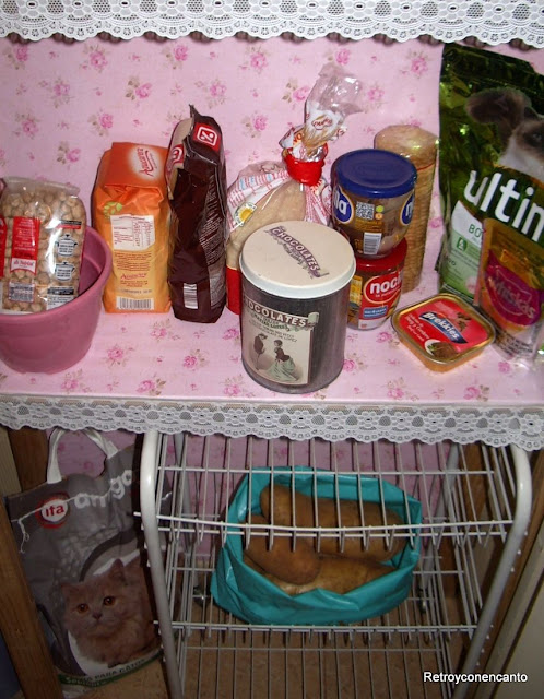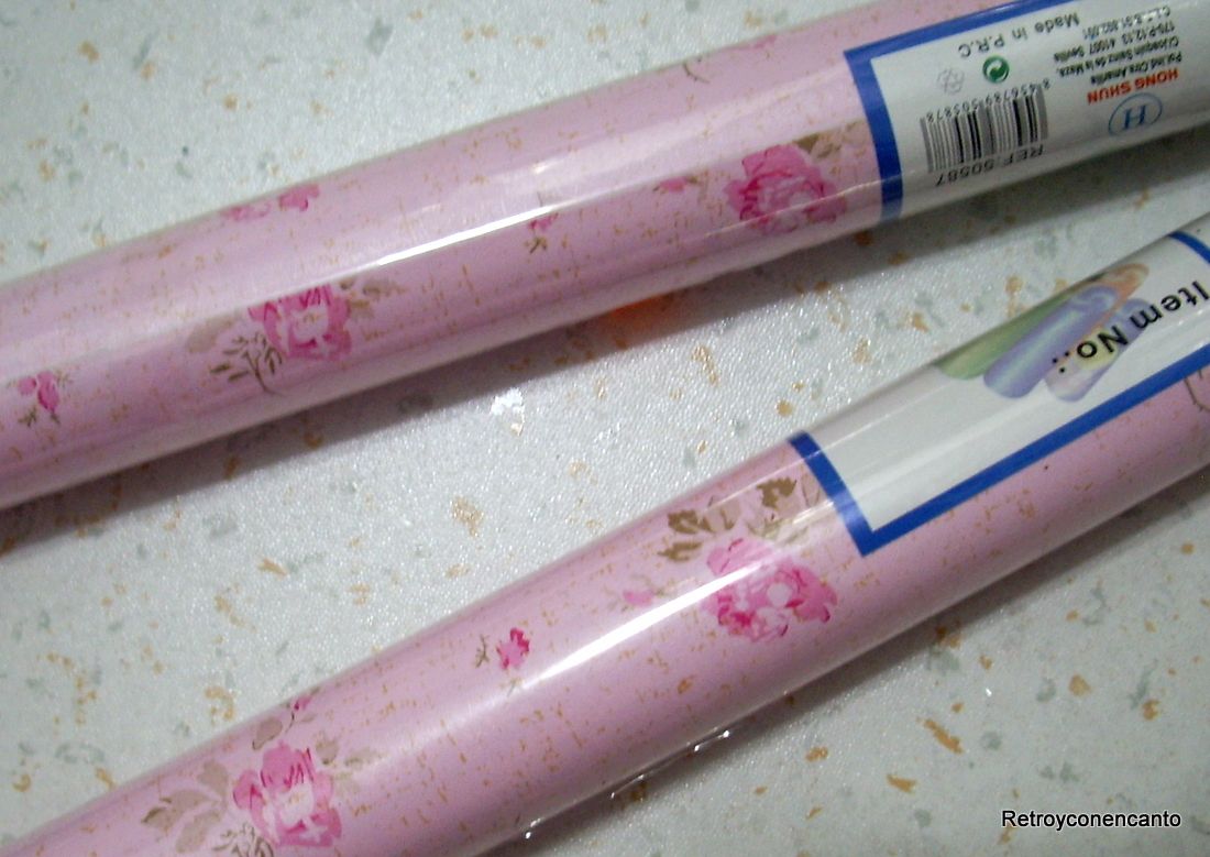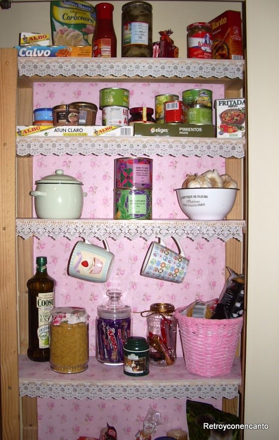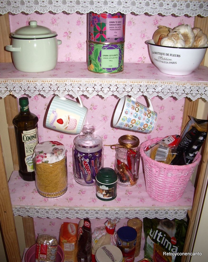 Pero eso iba a ser por poco tiempo. Un papel adhesivo muy florido y muy rosa daría un nuevo aire a la despensa.