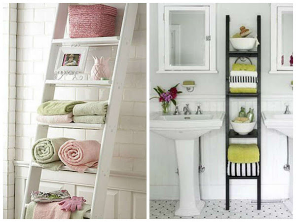 Si tienes una escalera vieja en casa que no sabes que hacer con ella, o simplemente te apetece incorporarla a la decoración de tu baño, descubrirás el universo de posibilidades que se abren con un elemento tan simple, desde un accesorio para poner jarrones con flores u objetos decorativos hasta un completo organizador de toallas y enseres de baño.