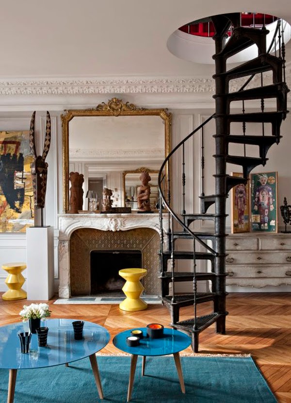 ¿Y si usamos una escalera de caracol? Sería maravillosa como librería, con libros y revistas apilados.