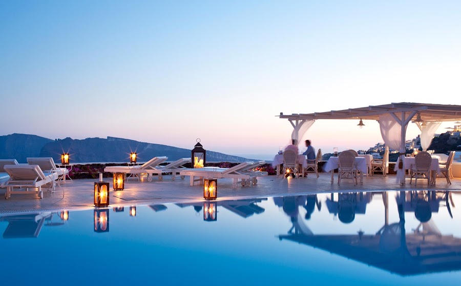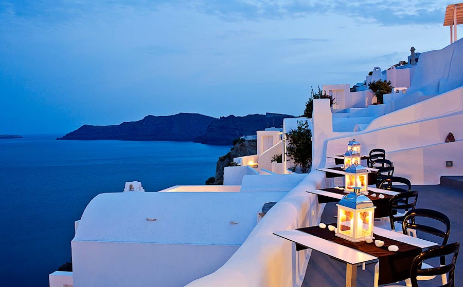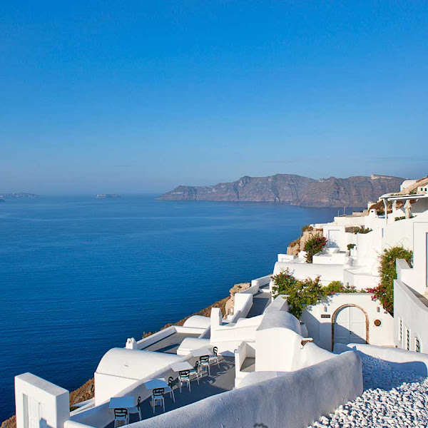 El CANAVES OIA HOTEL se encuentra situado en la construcción típica de Santorini, las cuevas situadas al borde del acantilado y que datan del siglo XVII. Está dividido en dos zonas, la Canaves Suites con mobiliario más tradicional y con piezas antiguas y la parte de Canaves Oia, con piezas de diseño y un estilo más moderno. Además consta de piscina y una terraza con unas vistas maravillosas al volcán, lo que llaman la Caldera.