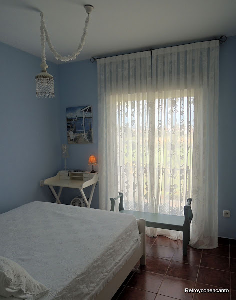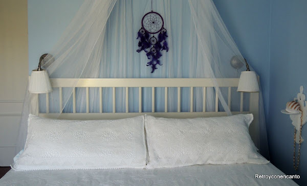 Un pequeño dormitorio en el que el peso de la decoración recae sobre los tejidos, siempre en blanco: piqué, ganchillo, tul..., para potenciar la sensación de amplitud, de relax y, por supuesto, de romanticismo. Con este, nuestro rincón de sueños, de una casa en la provincia de Cádiz, le decimos adiós al verano y participamos en la fiesta de blogs que organiza Nika Vintage, "Tu rincón de sueños"
