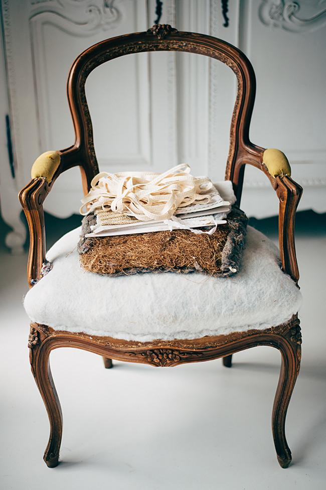 Un sillón vintage de estilo Luís XV y pasamanerías también rescatadas componen una imagen perfecta. Yo directamente dejaba así el sillón. Aunque ya sé sería poco usable. Algunas veces el valor estético me pierde jeje.