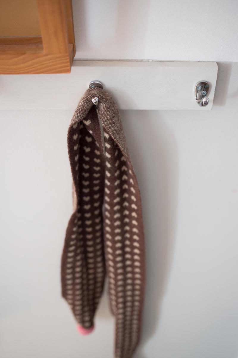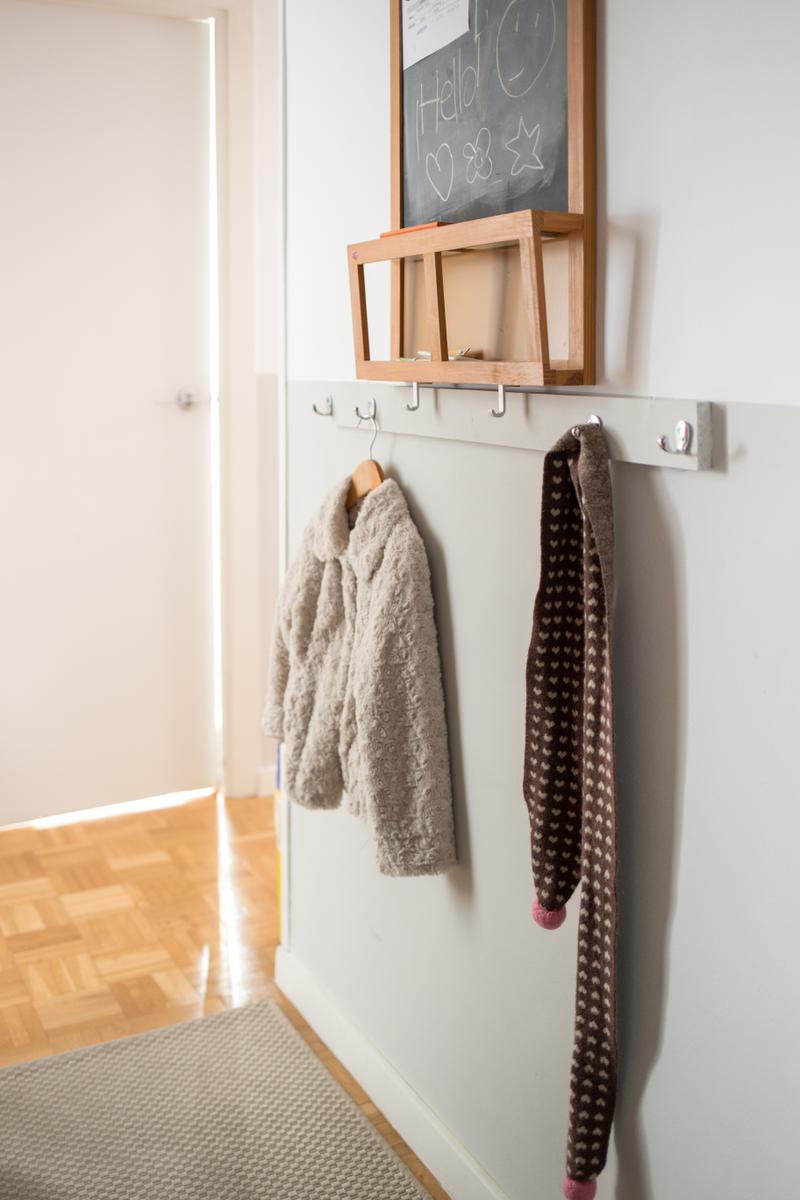 Hasta ahora me apañaba con la pizarra y los dos ganchos para colgar, pero las mochilas cada vez son más grandes, los abrigos cada vez ocupan más, y mi objetivo siempre es que las niñas lo puedan dejar ellas solas sin que yo me tenga que encargar de todo. Así que me urgía crear una zona de colgador más amplia y con más ganchos.