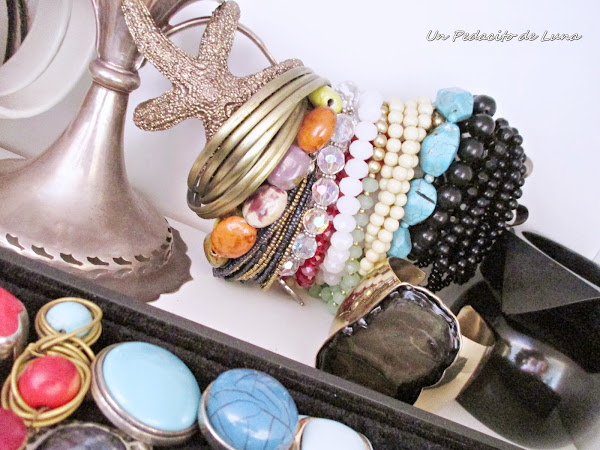 Con el paso de los años he ido acumulando mucha cosa, collares, pulseras, anillos, cadenitas, cadenotas, pendientes......algunas cosas que me encantan, otras que por su color o forma concretan mucho su puesta en escena, otras muy versátiles y que salen mucho a la luz.....