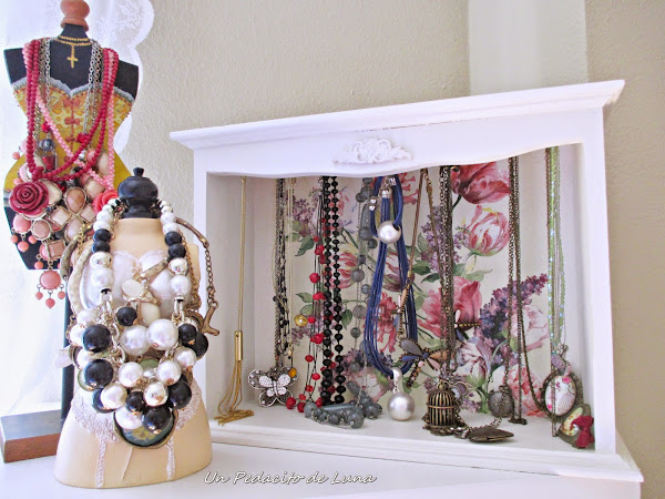 Ahora si está listo para albergar mis cadenas, alguna bisutería vintage que he ido reuniendo y los collarcitos más delicados que se enredan con facilidad.