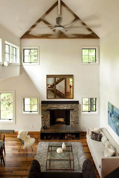 El interior, pretende ser fiel a la estética "tipo granero" que tanto nos gusta... Con techos de altura vertiginosa, y espacios abiertos, que no entienden de frialdad gracias a esas vigas de madera originales y recuperadas de incalculable valor, que tan bien encajan con mobiliario actual y piezas seleccionadas de estilo vintage...
