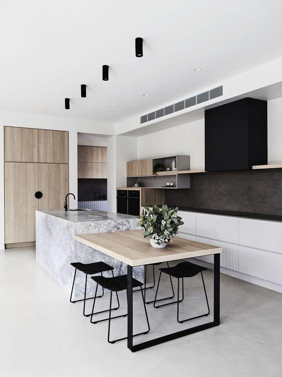 Vía: Pinterest . Para ver más imágenes de cocinas con isla y mesa integrada, cuento con varios tableros : cocinas con isla y mesas de cocina.