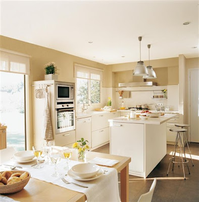 Si la cocina incluye una mesa de comedor, la principal área de trabajo, debe situarse mirando hacia esta, permitiendo que la persona que cocine pueda estar integrada en la reunión de la mesa.