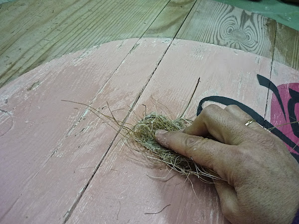 Ya hemos pintado el círculo de fondo, hemos desgastado un poco con lana de acero y a continuación hemos pintado la base para las letras de ebualá, SOLO QUE 17 VECES MAS GRANDEEEEE