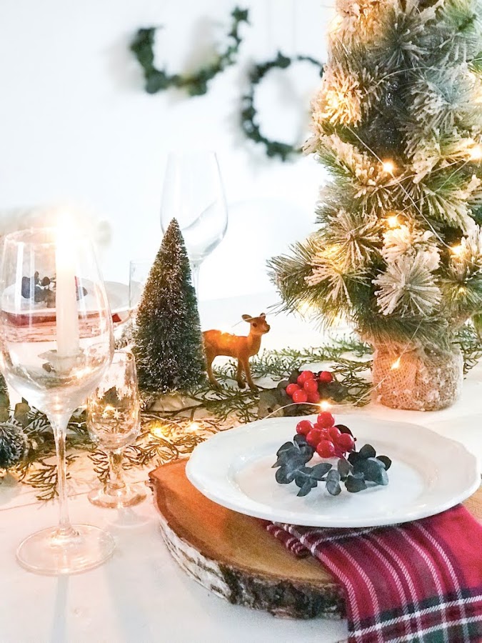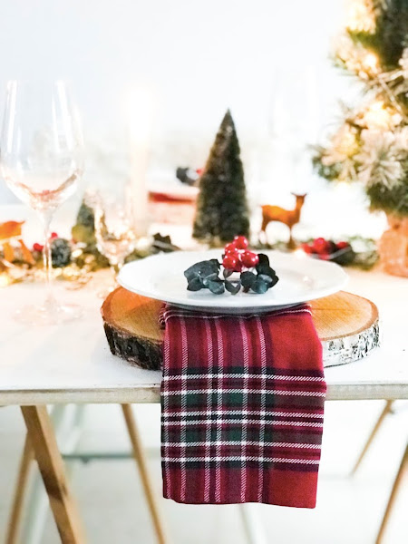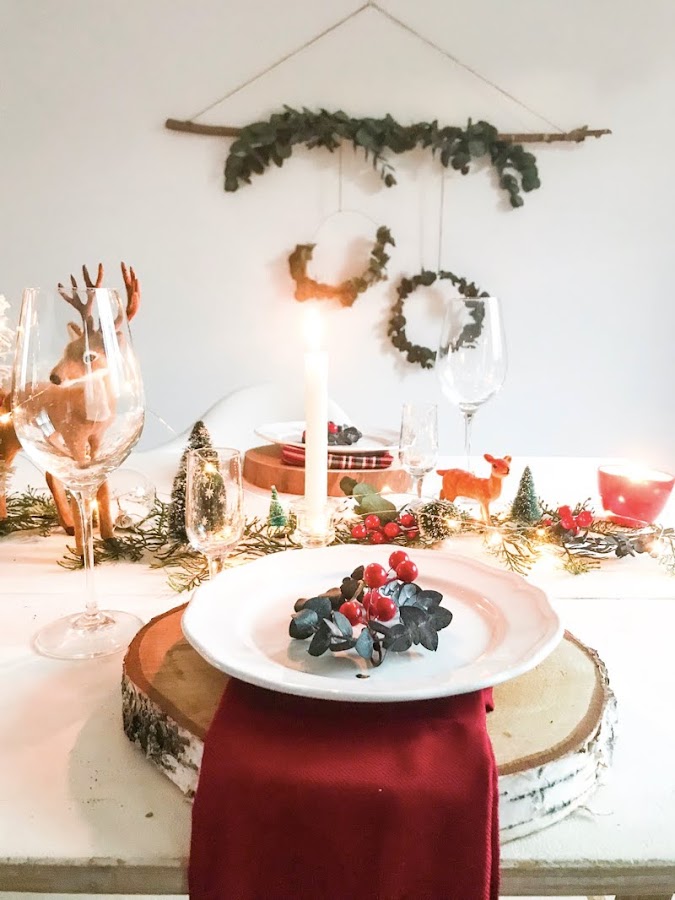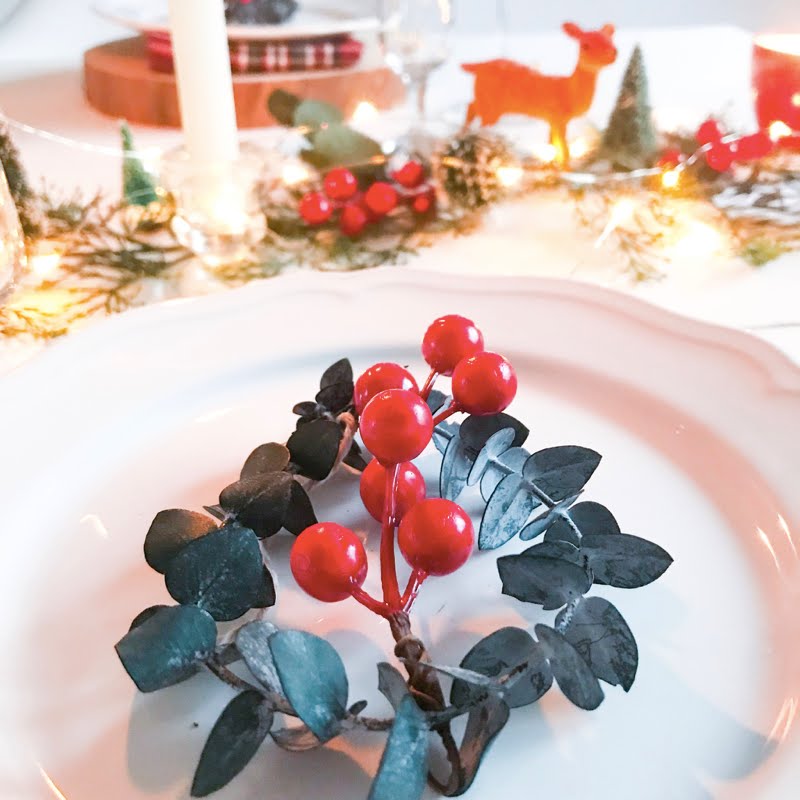 La decoración de la mesa está centrada en tonos neutros, muy elegantes, pero sin perder de vista el rojo y algunas tendencias como la servilletas tartán que quedan muy chulas. Por supuesto, alguna corona de eucalipto o ramito para dar olor (aquí los tenéis en el shop).