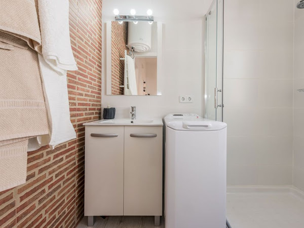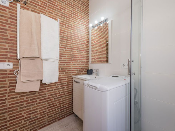 El espacio se completa con un baño que incorpora plato de ducha y con una pared de ladrillo para continuar con el estilo de toda la casa.