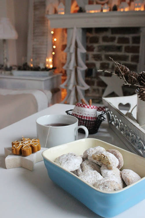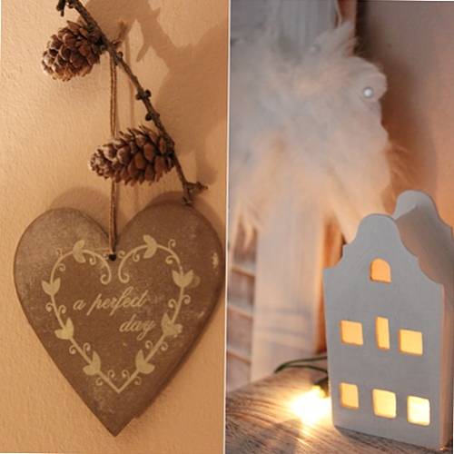 Me gustan las casas en las que sus dueños son capaces de exprimir su imaginación para reciclar cualquier cosa. Y es que, cuando ví este rincón dedicado a la navidad, lo primero que pensé es !tan sencillo y a la vez tan currado! Porque si os fijais prácticamente todos los detalles los han realizado ellos. Desde las letras de "Noel", que son tablas unidas o trozos de madera que conforman las letras, hasta la bandeja de madera decapacada que alberga el jarrón donde están expuestas las piñas.