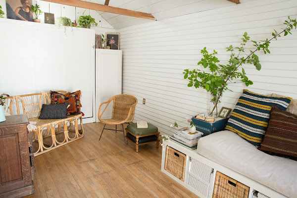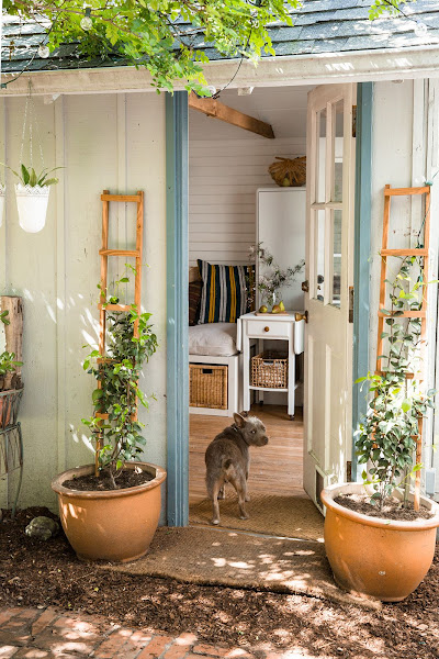 Una solución "obligada" para este tipo de casas es aprovechar la parte superiores de los muebles como zona de almacenaje. En esta casa comienzan aprovechando ya de por si la parte superior de la puerta doble con una balda pero si os fijáis bien, no hay ningún mueble alto en el que su parte de arriba no este ocupada por algún adorno, una caja o macetas. Y es que este es sin duda un buen recurso que podríamos aprovechar para nuestras casas, aunque no sean así de pequeñas.