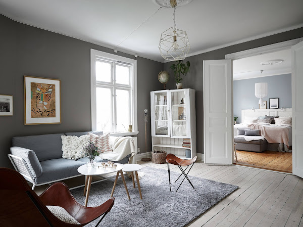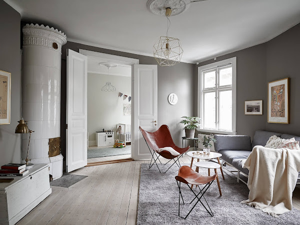 En cuanto vi todos los detalles de esta bonita vivienda situada en Gotemburgo, me quedé prendada de ella. Vamos que ya me he imaginado en estos espacios con una bonita manta xxl, un té, una película y esa bonita estufa de cerámica encendida.