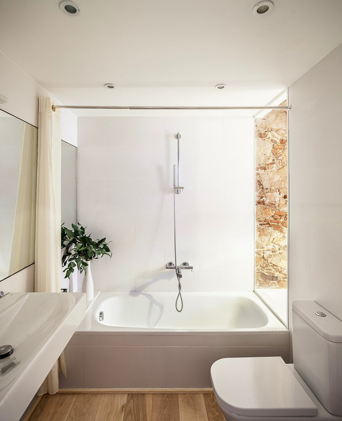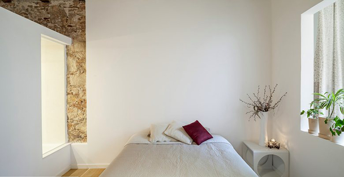 Como podéis ver, su propietaria ha decidido dejar a la luz su pared de piedra y sus enormes techos con arcadas.