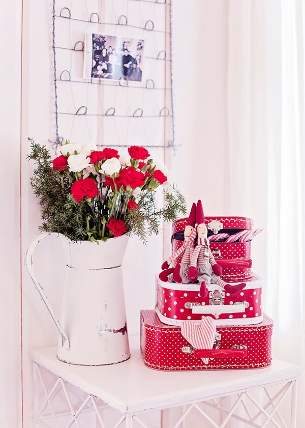 Parece ser que esta en casa lo del rojo se lo han tomado muy en serio. Tomando como base el blanco que decora de una forma perpetua la casa. Han ido colocando pequeños objetos en los que el protagonista era el rojo, creando una vistosa estampa. En algunos casos aportan un toque de diversión,  porque además vienen con estampados originales como topos, fresas o delicadas flores.