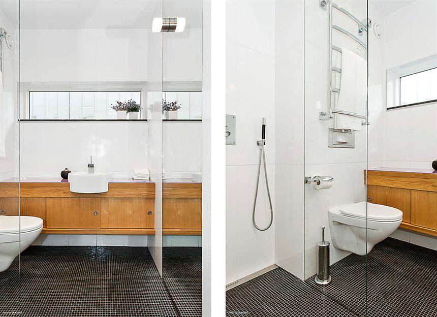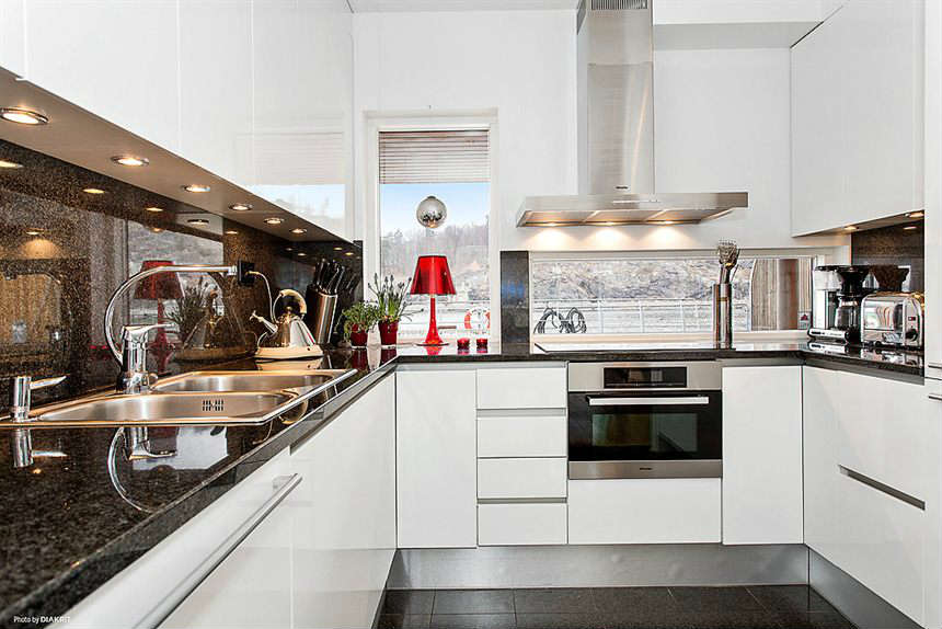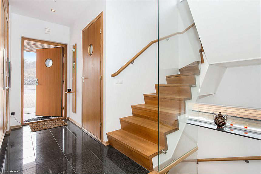 ... Es una singular casa barco situada en un canal de una población cercana a Estocolmo. Su coqueto interior, con revestimientos de madera y mobiliario blanco conforman espacios amplios y muy luminosos. En el salón destacan los sofás de un azul electrico, que le aportan un aire dinámico y actual. Destacable es también la espectacular cocina, brillante por el uso del acero inoxidable en sus revestimientos. El resultado es una casa diferente, impecable, cómoda y práctica, donde la sensación de espacio y su particular ubicación le confieren una agradable sensación de libertad.