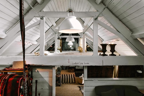 Hay mañanas, en las que te encuentras una foto que te llama la atención, y de repente empiezas a saltar de enlace a enlace, luego otro enlace que te lleva a otro enlace.......enganchada a ver cosas bonitas. A mí hoy me ha pasado eso :-), se me a cruzado en el camino esta preciosa tienda y no he podido hacer más que mirar y remirar las imágenes alucinada. En esta tienda han conseguido crear un ambiente único en un granero, una estética simple adornada con infinidad de objetos preciosos, estanterías repletas de velas, cajas llenas de piñas, candelabros hechos con astas, ropa de cama, mantas, toallas, muebles reciclados, ganchos para colgar, cepillos y un largo etc que os dejo por descubrir. Unos cuantos metros cuadrados con el sabor del pasado y artículos en tonos neutros. Ah, por cierto, la tienda se llama Baileys Home y si algo os gusta mucho lo podéis comprar aquí. Espero que os haya gustado la visita, yo suspiro por IR.