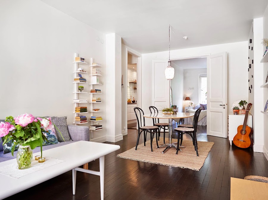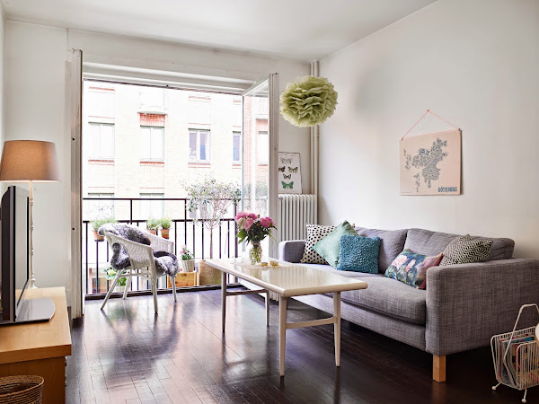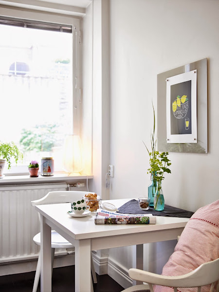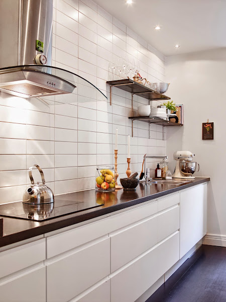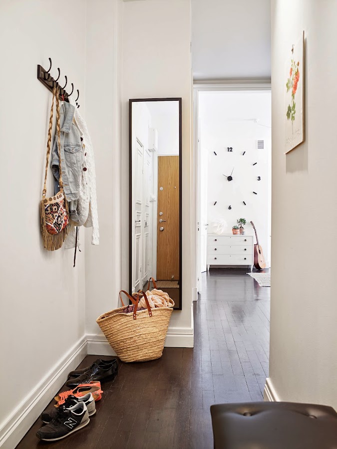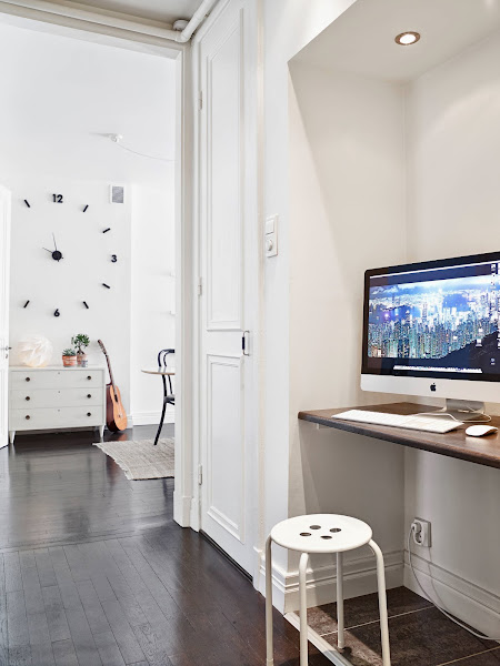 Aprovechando una zona de paso y con una simple balda se han montado un escritorio que no roba nada de espacio a la casa, además evitan así ponerlo en el salón o dormitorio, con las molestias que ello conlleva si tienes que compartir casa, de esta manera puedes cerrar la puerta del salón y trabajar tranquilo.