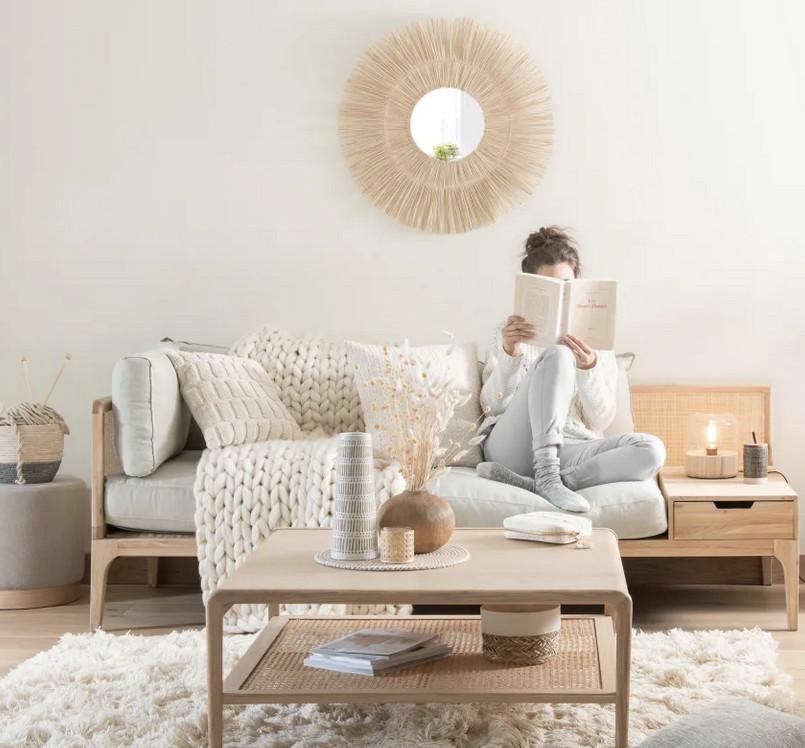 Por otro lado, In the Woods se decanta por los colores neutros: blancos, beige o arena… tonalidades que insuflan ánimo, pero también calman cuando entramos por la puerta de nuestra casa. Los muebles de esta tendencia son de madera clara, con superficies poco depuradas y materiales naturales. De hecho, las fibras están por todos lados, reflejando esa preciosa conexión con la naturaleza que tanto apreciamos. Los textiles son suaves y gruesos, para aportar la calidez necesaria en las noches más frías. De ahí proviene la profusión de faroles y velas, por si en algún momento se va la luz o queremos prescindir de ella.