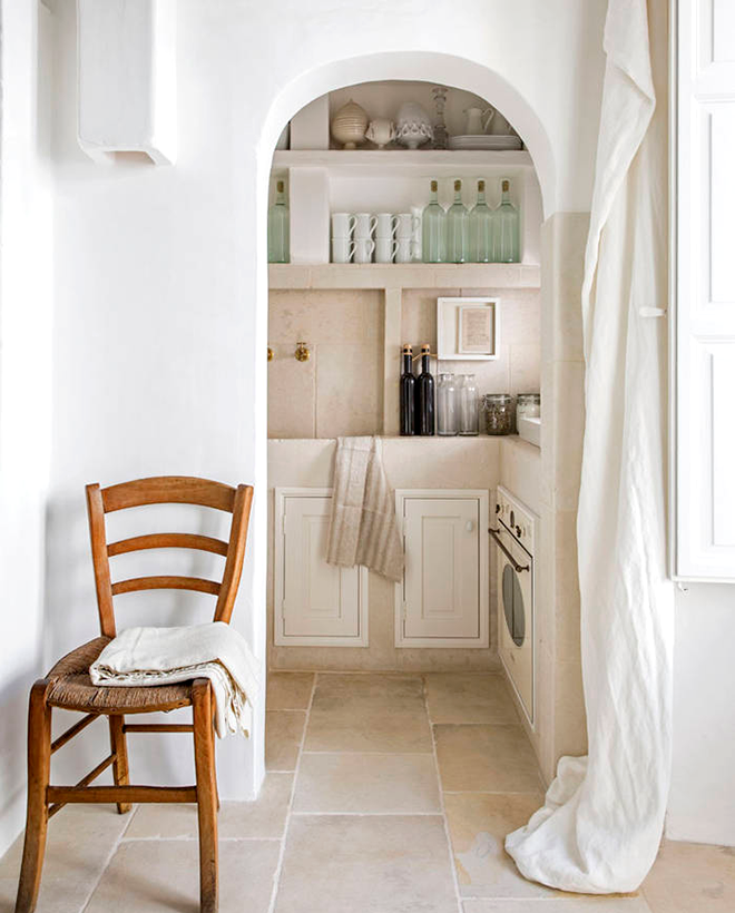 Si me dejara llevar y cerrara los ojos seguramente me visualizaría en un entorno idílico. Seguramente sería cerca del mar, muy cerca, con aguas cristalinas, mucha luz, calma, silencio y sonido marino. Me imaginaría una pequeña villa blanca muy blanca, sencilla, rodeada de vegetación en macetas de barro, verde sin flores quizás alguna buganvilla pero prácticamente verde. También soñaría con un ambiente de camas exteriores, cojines y textiles neutros, todo muy calmado. El interior de esta villa sería también blanco con mucha madera con historia, alfombras de fibras naturales. Aquí sí que habría flores frescas y la casa estaría siempre ordenada, la cocina sería abierta, sin muebles con puertas, llena de estanterías con vasos, botellas y tazas a la vista y siempre ordenado. Y cuando abriese los ojos y volviera a la realidad me recrearía observando esta vivienda exactamente porque ésta sería "la villa de mis sueños".