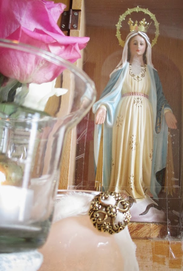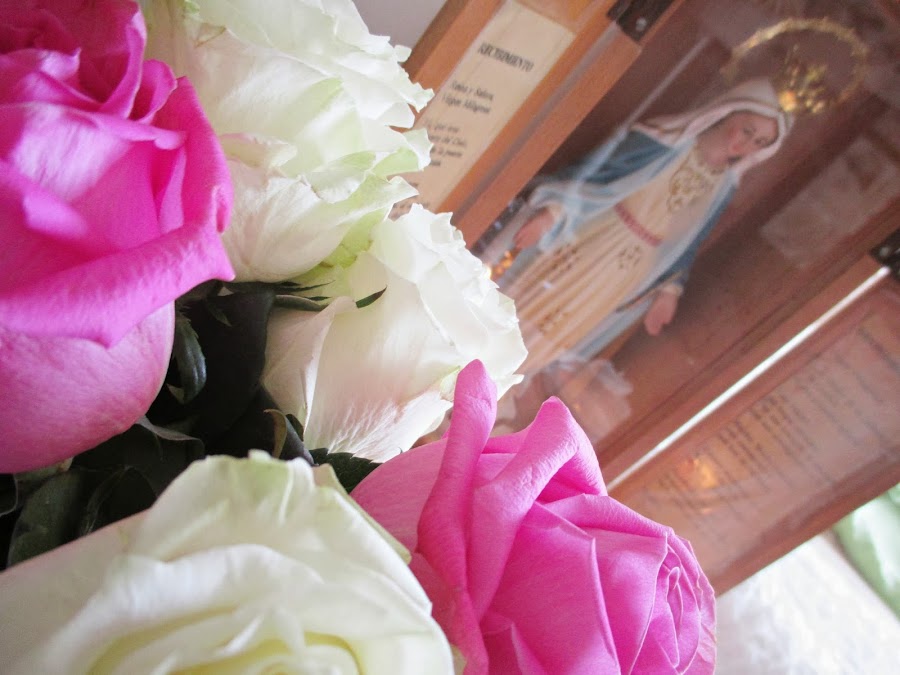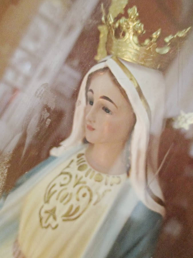 Ante mi cara de sorpresa y maravillada por el recuerdo de aquellas imágenes de casa de mi abuela - donde la Virgen, ya fuera la Milagrosa, o la del Carmen u otras.... se hacía presente para hacerle nuestras peticiones y oraciones de agradecimiento - mi vecina decidió dejármela en prenda, añadiéndome a la lista de vecinos de la rueda para que pueda volver a casa la siguiente vez.